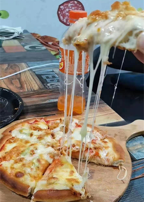 9. 就是开头讲的那个情况,披萨都凉了,还想拉丝怎么可能。任何芝士凉了都不会拉丝, 如果拉丝那就奇怪了,你敢吃吗?为什么会有这个问题呢?凉了拉丝不拉丝这个问题, 因为牵扯到外卖问题。目前很多披萨店都是在做美团和饿了么。尤其是冬天, 从店到顾客手 里可能时间有点久,客户收到披萨后就凉了,一吃就不拉丝了。